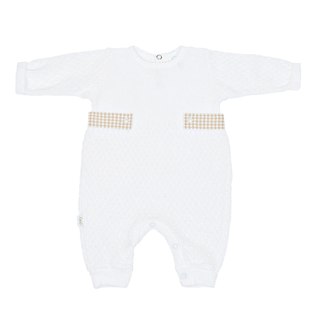Baby Boy Long Sleeve Romper With Khaki Gingham Side Tabs