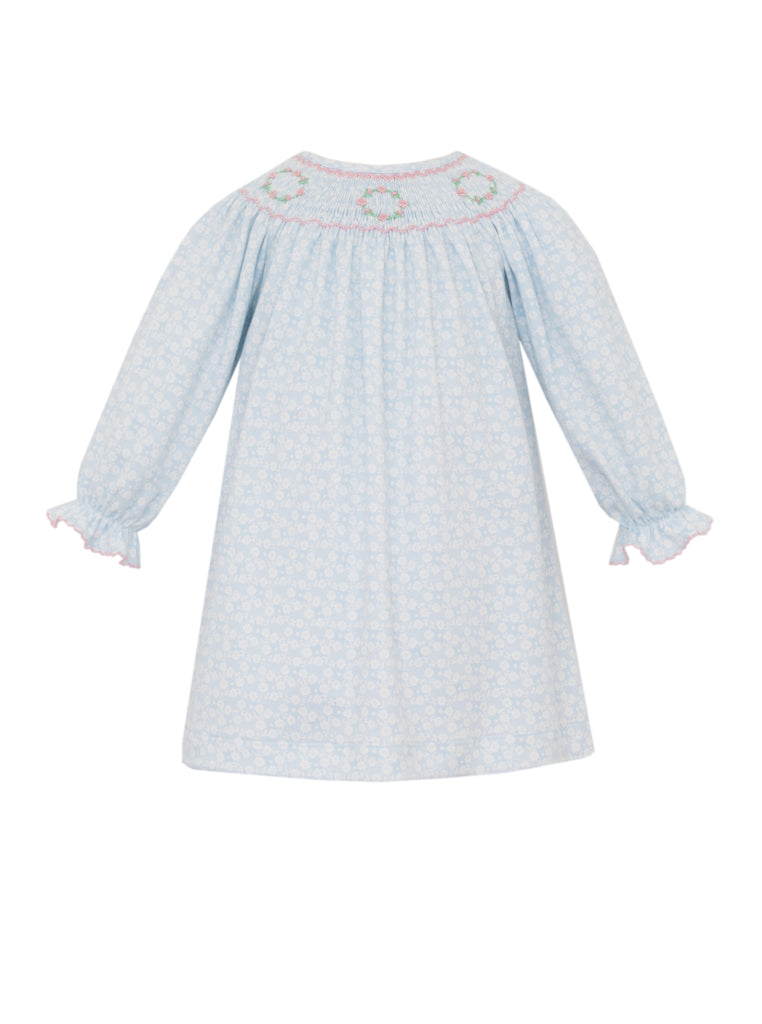 Toddler Girl Pauline- Light Blue Floral Print Knit Bishop Dress