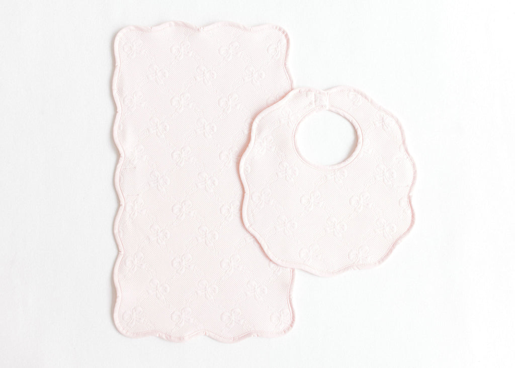 Baby Girl Bib & Burp Set - Pink Jacquard Bows