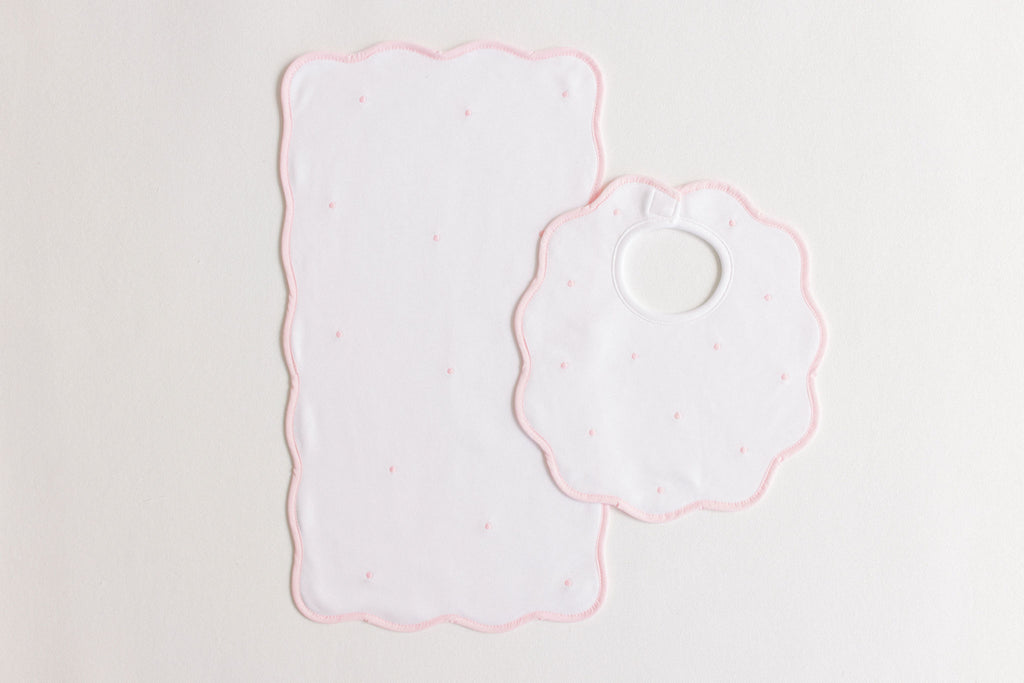 Baby Girl Bib & Burp Set - Pink Embroidered Dots