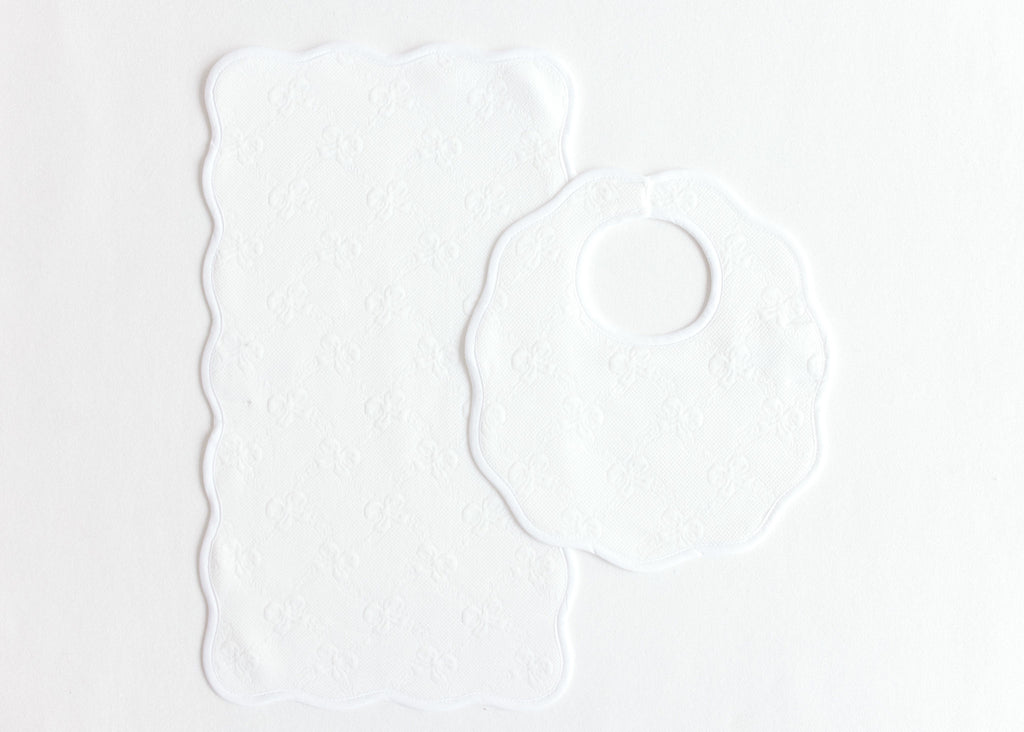 Baby Girl Bib & Burp Set - White Jacquard Bows