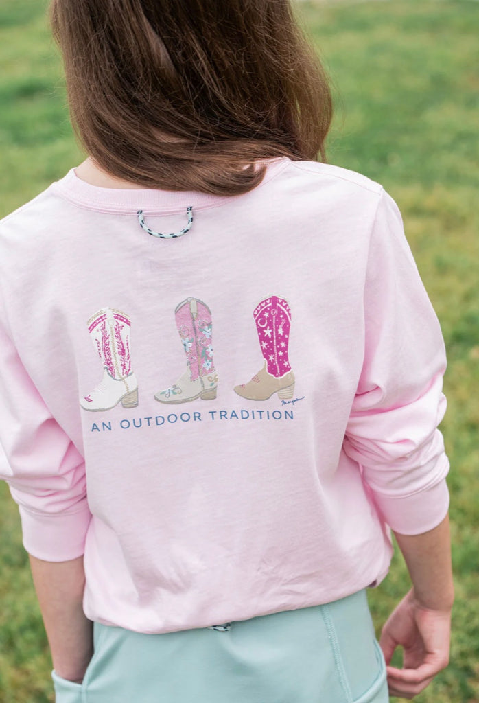 Toddler Girl LS Tee Pink With Cowgirl Boots