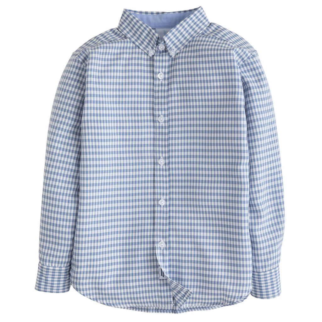 Toddler Boy Gray Blue Gingham Button Down Shirt