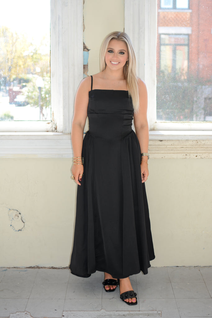 Black Satin Maxi Dress